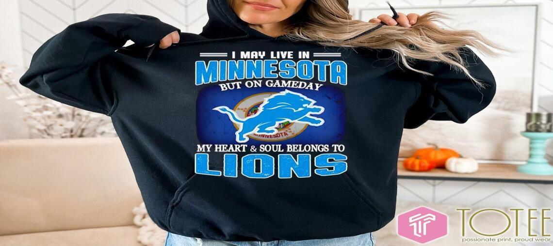 I May Live In Minnesota But On Gameday My Heart & Soul Belong To Detroit Lions Tshirt