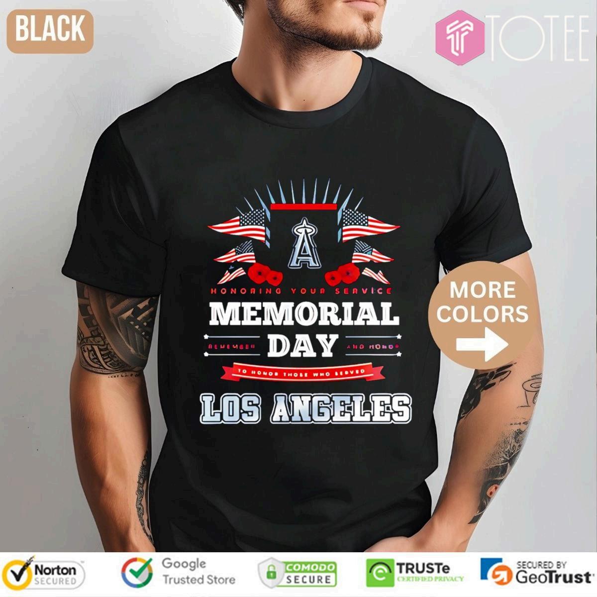 Showyourpride&honorwiththeLosAngelesAngelsMemorial DayT-shirt.Commemorateservice&supportourheroes.Limited edition,getyourstoday&showyourrespect.