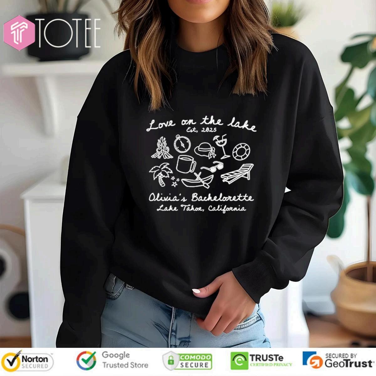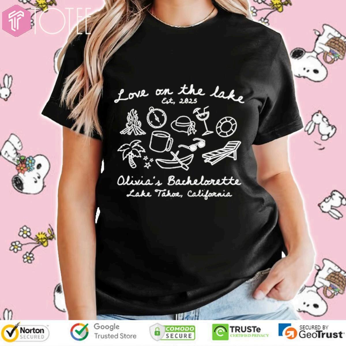 MakeOlivia'sLakeTahoebachelorettepartytrulyunforgettablewitha "LoveOnThe LakeOliviaBacheloretteLakeTahoeCaliforniaT-shirt"speciallydesignedt-shirt!