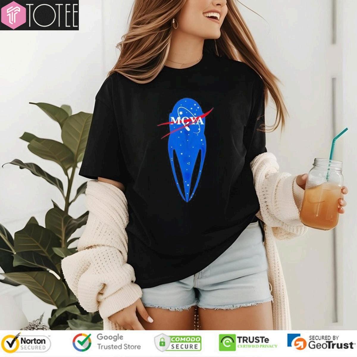 UnleashyourinnerexplorerwiththeMcyaNasaLogoT-shirt!Show yourpassionforspaceandgrabthismust-havetee.Limitedstock –getyoursnowandinspire!
