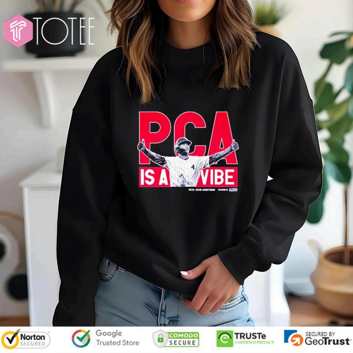 Showyour "PeteCrow-ArmstrongPcaIsAVibeThumbT-shirt"unwaveringsupport forrisingChicagoCubsstarPeteCrow-Armstrongwiththeofficial"PCAVibeThumb" T-shirt.Thisisn'tjustapparel;it'sastatement.It’sadeclarationofyourfaithinthe futureofCubsbaseballandastylishwaytorepresentyourteampride.Wearthe samevibethatfuelstheyoungoutfielder'son-fieldenergy.Getthe**PCAVibeThumb T-shirt**andbeapartofthegrowingfanbase.Thisteeisdesignedtobeastaplein anyfan'swardrobe,showcasingbothyourteamloyaltyandatrendy,modern aesthetic.Becomepartofthe**Cubs**nation.