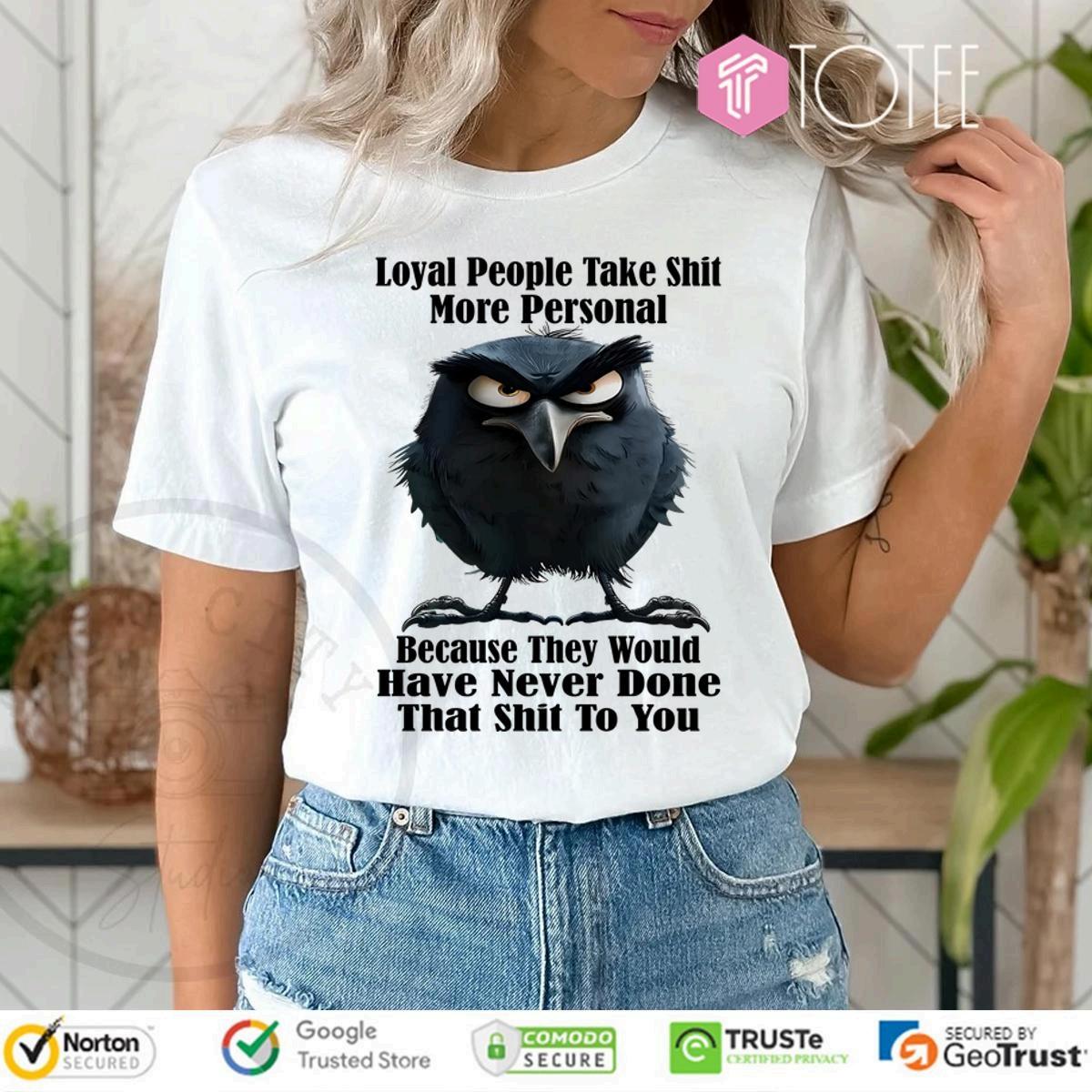 Atthe "RavenLoyalPeopleTakeShitMorePersonalBecauseTheyWouldHave NeverDoneThatShitToYouT-shirt"heartofRavenLoyal'svaluesliesa fundamentalbeliefinhonestyandtheimportanceofmaintainingintegrity.This foundationbuildsacommunitywherememberscanexpectopennessandreliability. Whensomeoneperceivesalackoftruthfulness,itbecomesapersonalassaulton thesevalues.ThesimplephraseontheT-shirt,"Shit,"encapsulatesthatfeelingof betrayal,makingtheissueevenmoreapparent.Thisvisceralreactiontoperceived dishonestyisfurtheramplifiedbythecollectivesenseofbelongingwithintheRaven Loyalcommunity.Itservesasatangibleexpressionofthosecorebeliefs.