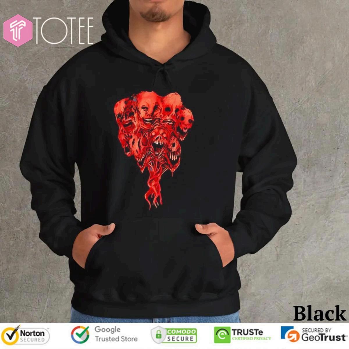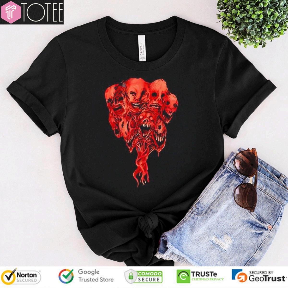 Tags: redhumanskulltshirtwithzombiefaces creepyeyest-shirtforhalloween