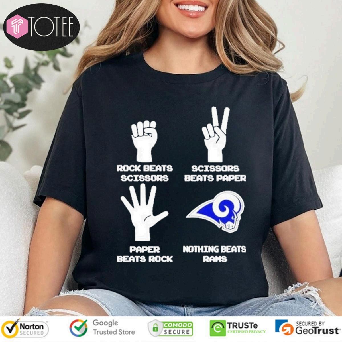 Lookingforthe "RockBeatScissorsPaperBeatRockScissorsBeatPaperNothing BeatsRamsT-shirt"perfect"NothingBeatsRams"t-shirt?Findingateethatfits flawlesslyiskey.Seekoutreputableonlineretailersspecializinginfanapparel.Check sizechartsmeticulouslytoensureacomfortablefit.Prioritizequalitymaterialslikesoft cottonblendsforlastingwear.Readcustomerreviewsforinsightsintosizingaccuracy andoverallsatisfaction.Consideroptionswithaclassic,comfortablecutandfeelfor everydaywear.Explorelocalteamshopsandsportsapparelstoresforpotentialfitting andimmediateavailability.Don’tsettle;yourideal"NothingBeatsRams"t-shirtisout there,waitingtobediscovered.Prioritizefitandqualitytoelevateyourgameday attireandshowyourteamspiritinstyle.