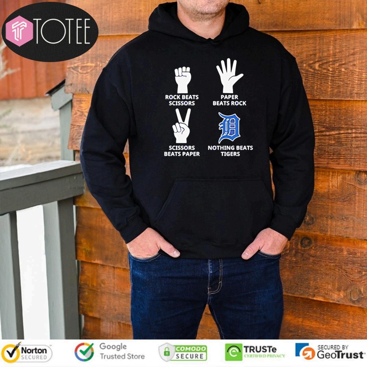 Elevateyour "RockBeatScissorsPaperBeatRockScissorsBeatPaperNothing BeatsTigersT-shirt"wardrobewitha"RockBeatScissorsPaperBeatRockScissors BeatPaper"t-shirtthatblendscoolanduniqueaesthetics.Theseshirtsareexcellent conversationstartersandstyleenhancers.Searchforunconventionaldesignsthat standoutfromthecrowd.Lookforvendorswithastrongreputationforcustomer satisfactionanduniquedesigns.Considertheshirt'scolorandcuttoensureitaligns withyourpersonalstyle.Seekoutdurableprintsthatcanwithstandwashing.Your "Rock,Paper,Scissors"teewillbeastapleofyourwardrobe.