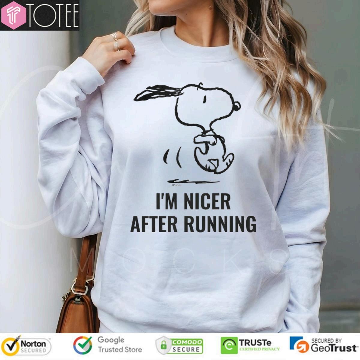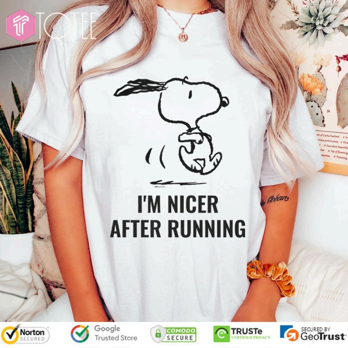 UnleashyourinnerpeacewithourSnoopyImNicerAfterRunning tee!Getyoursnowandexperiencethepost-runglow.Shoptoday andfeelthedifference.