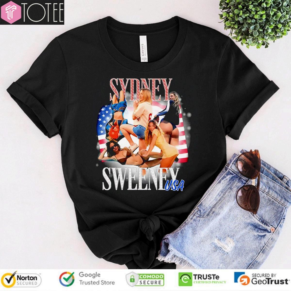 Celebratethe4thwiththeiconicSydneySweeney!GetyourUSA Americanflagt-shirt&showyourpatrioticpride.Limitedstockshopnow&makeastatement!