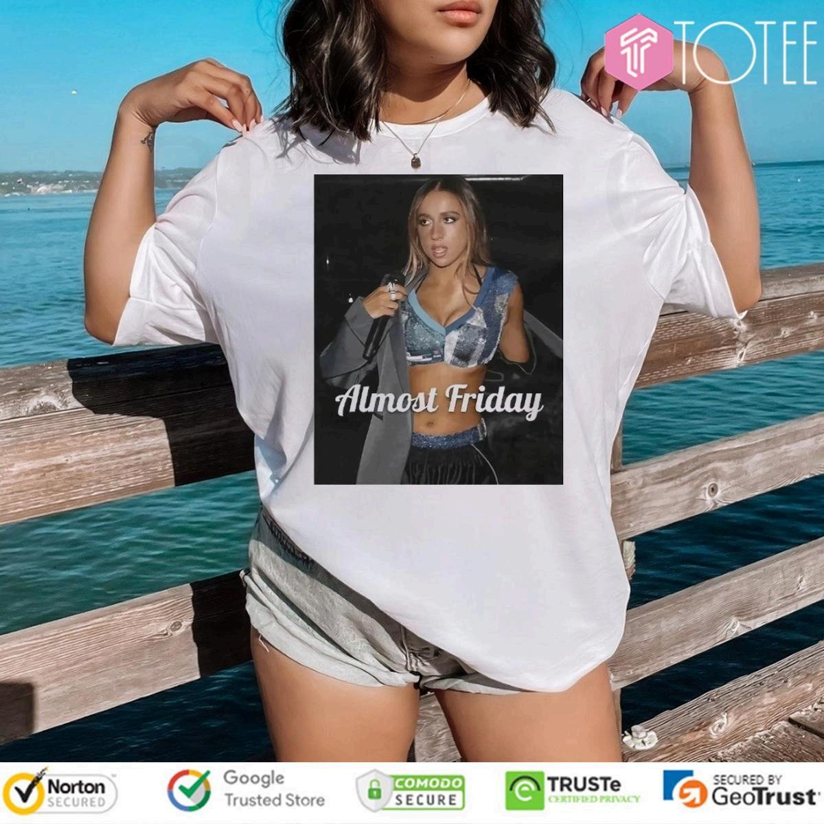 UnleashyourinnerdancerwiththeTateMcRaeAlmostFridayTshirt!FeeltheFridayvibesanytime,anywhere.Limitedstock-grab yours&danceintotheweekend!