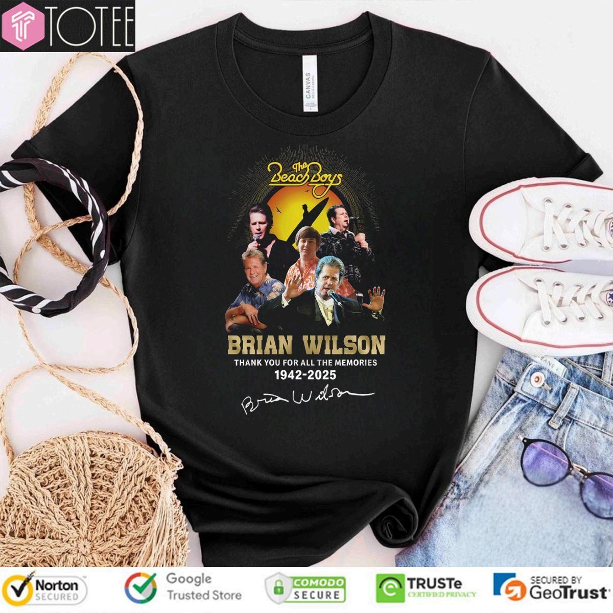 PaytributetoBrianWilsonandthe "TheBeachBoysThankYouForAllTheMemories BrianWilson1942-2025T-shirt"BeachBoyswiththiscommemorative"ThankYou ForAllTheMemories"t-shirt.Thisdesigncelebratestheenduringlegacyoftheband andtheirinnovativeapproachtomusic.Thisteeprovidesatangibleconnectionto theband’srichhistory.Wearingthist-shirtisaneasywaytoshowyoursupportfor theartistryofBrianWilson.CapturethespiritoftheBeachBoyswithacomfortable, high-qualityt-shirt.Theteeservesasadailyreminderoftheband'slastinginfluence. EmbracethenostalgiaandwearyourlovefortheBeachBoyswithpride.