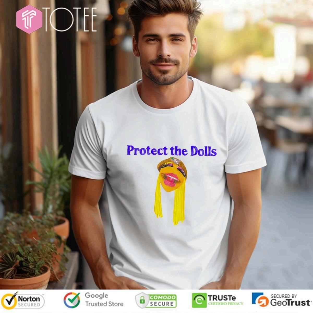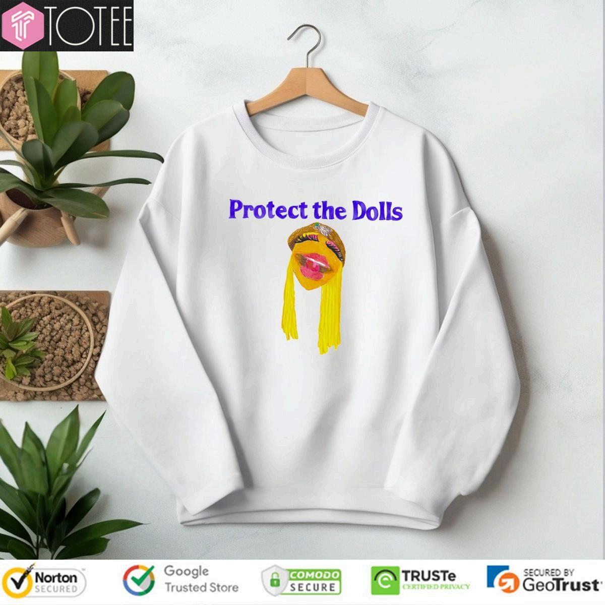 ProtectTheDollsT-shirtforvariousoccasions.Foracasuallook,pairitwithjeans, sneakers,andacasualjacket.Dressitupwithaskirtortailoredpantsandablazer.