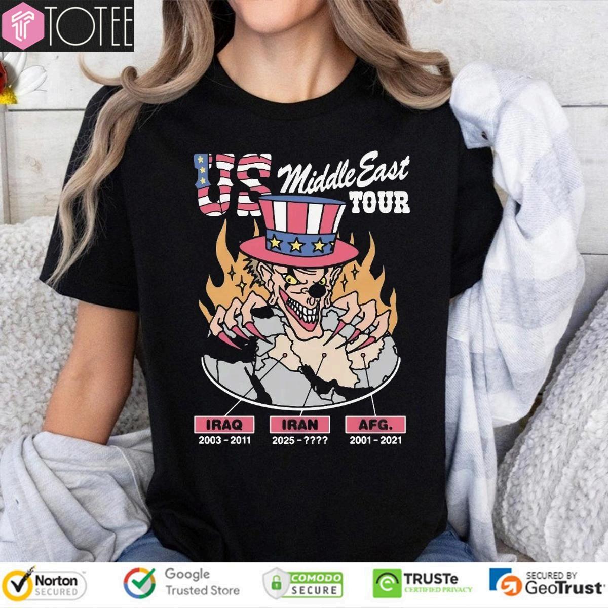 Don’tmissthe "UsMiddleEastTourIraqIranAfgHappy4ThOfJulyT-shirt"chance toownapieceofhistorywithourlimited-editionFourthofJulyt-shirts.Thesespecial designscreativelycombinethemesoftheUSMiddleEastTour,Iraq,Iran,and Afghanistan,makingthemhighlysought-after.Ourshirtsaremorethanjustapparel; theyareasymbolofprideandaconversationstarter.Theexclusivedesignensures thatyou’llbesportingatrulyuniquelook.Craftedfromtop-qualitymaterials,thesetshirtsofferunmatchedcomfortandstyle.Orderyourstodayandwearapieceof historythisIndependenceDay.Stocksarelimited,sodon'tdelay!