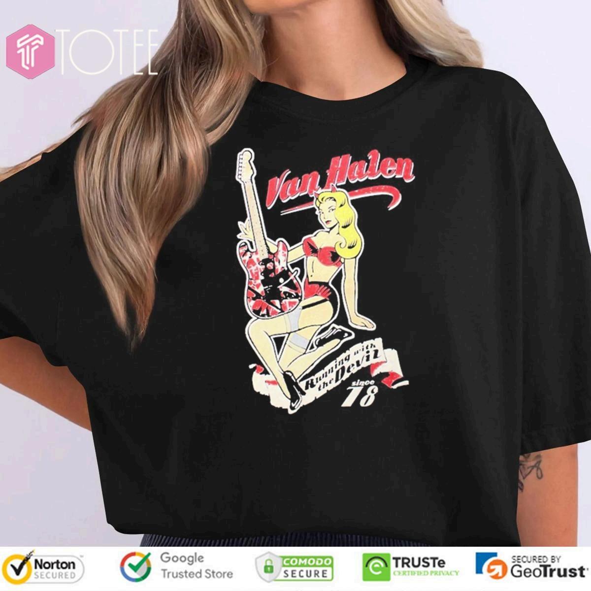 Embraceyour "VanHalenRunningWithTheDevilSince78T-shirt"rockandrollspirit andproudlydisplayyouradmirationforVanHalenwithaniconic"RunningWithThe Devil"t-shirt.Findingtheperfectteeiseasierthaneverwithnumerousonlineretailers offeringadiverseselection.Exploreofficialmerchandiseshopsforguaranteed authenticityandquality,ensuringyoureceiveagenuinerepresentationoftheband. Browsepopularmarketplacestodiscoverawiderarrayofdesigns,styles,andprice points.Remembertoscrutinizesellerratingsandproductreviewsforasmoothand secureshoppingexperience.Youcanfinddifferentsizesandstylessuchasvintage, graphic,andcustomVanHalent-shirts.