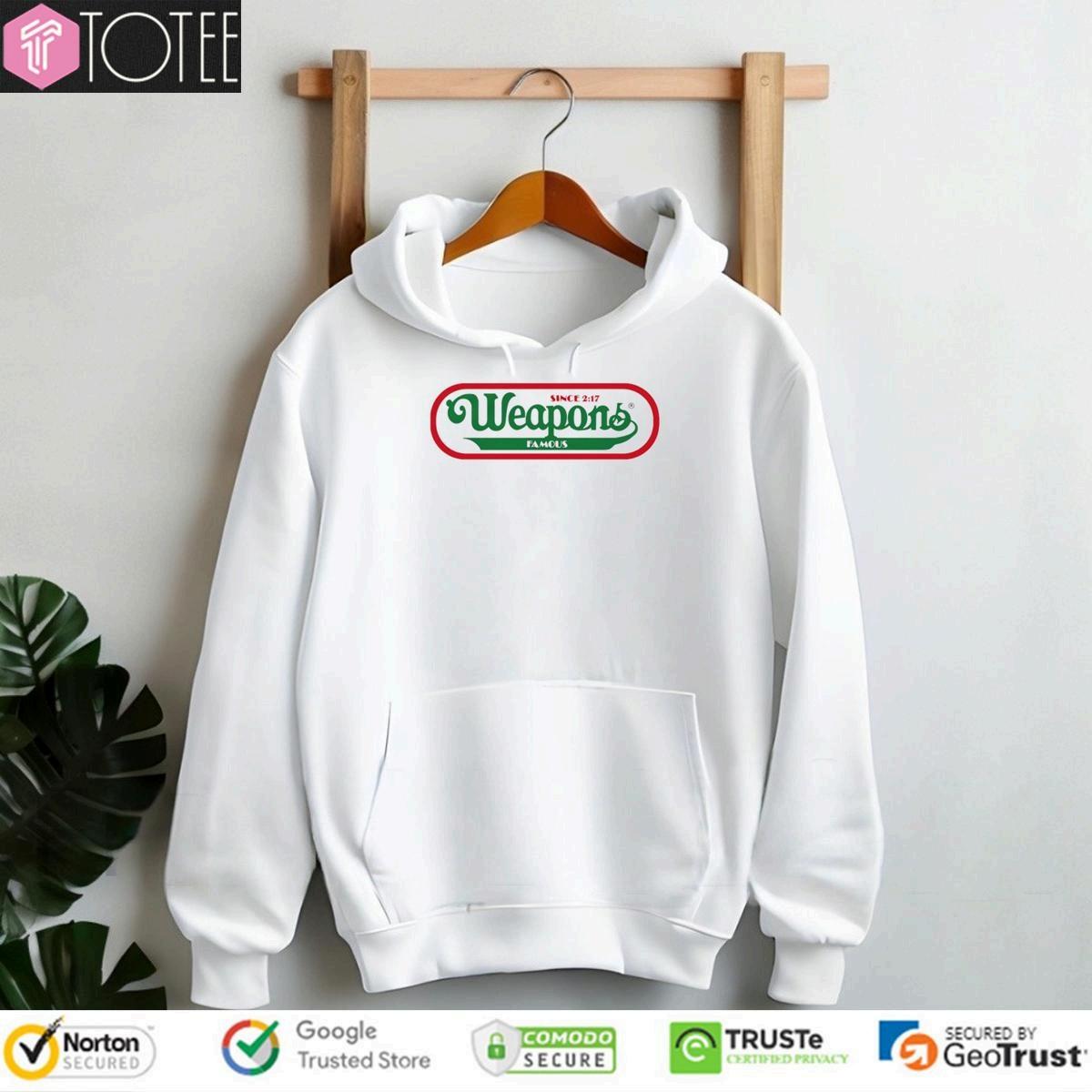 UnleashyourinnerfoodiewithourWeaponsFamousHotDogsTshirt!Grabyoursnowandmakeastatement.Limitedstock–Dont missoutondeliciousstyle!