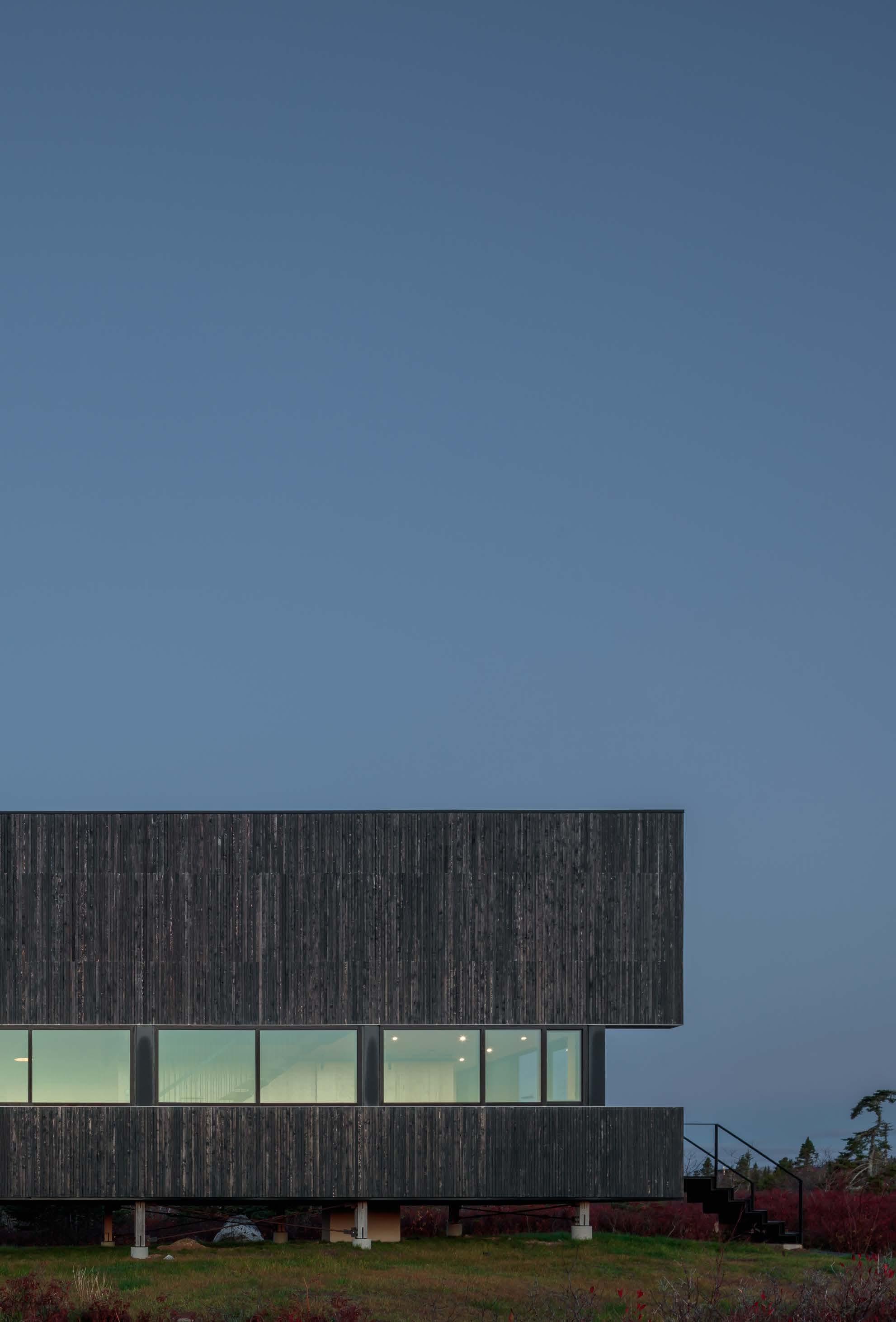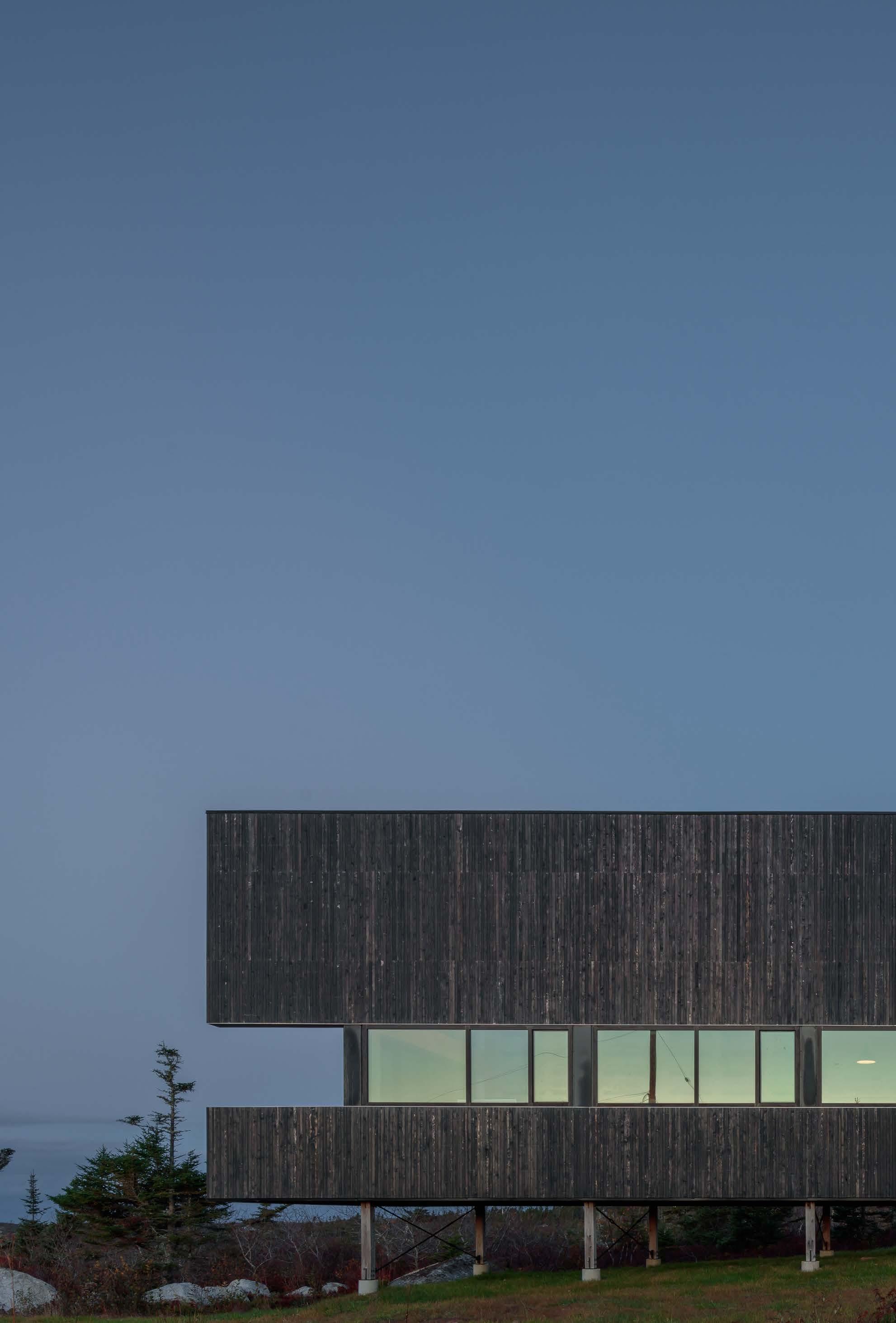 Situated along a rocky outcrop that overlooks Back Bay, this open concept cottage is sited within the culturally rich community of Terence Bay, Nova Scotia. The architectural form of the building is driven by a desire to frame the rich coastal landscape. The procession through the space invites the guest into a double height volume that frames a dramatic view of the ocean. The strategic fenestration captures a panoramic view of the rugged terrain and takes advantage of natural cross ventilation.