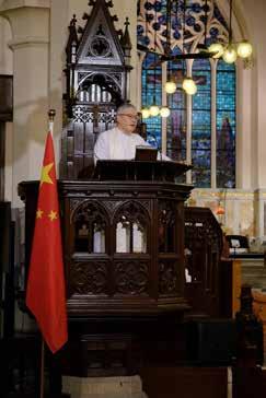 為慶祝香港回歸祖國二十七周年,�月��日(周日)於中環 聖公會聖約翰座堂舉行特別崇拜。當日特設慶回歸祈禱環 節,在聖壇上,擺放一枝名為「為香港祈禱」的蠟燭,另外亦 在講台旁擺放國旗。