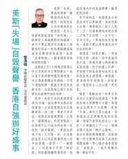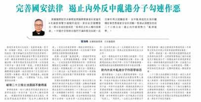 完善國安法律 遏止內外反中亂港分子勾連作惡 美斯「失場」自毀聲譽 香港自強辦好盛事