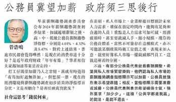 公務員冀望加薪 政府須三思後行