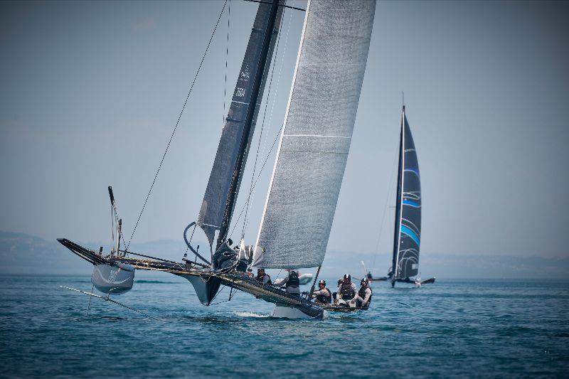 Mon projet évoque cet univers des sports nautiques, il amène une voile abstraite jusqu'au rivage devant le musée olympique, brouillant ainsi la frontière stricte entre terre et eau, ces deux éléments se confondant un peu l'un dans l'autre.