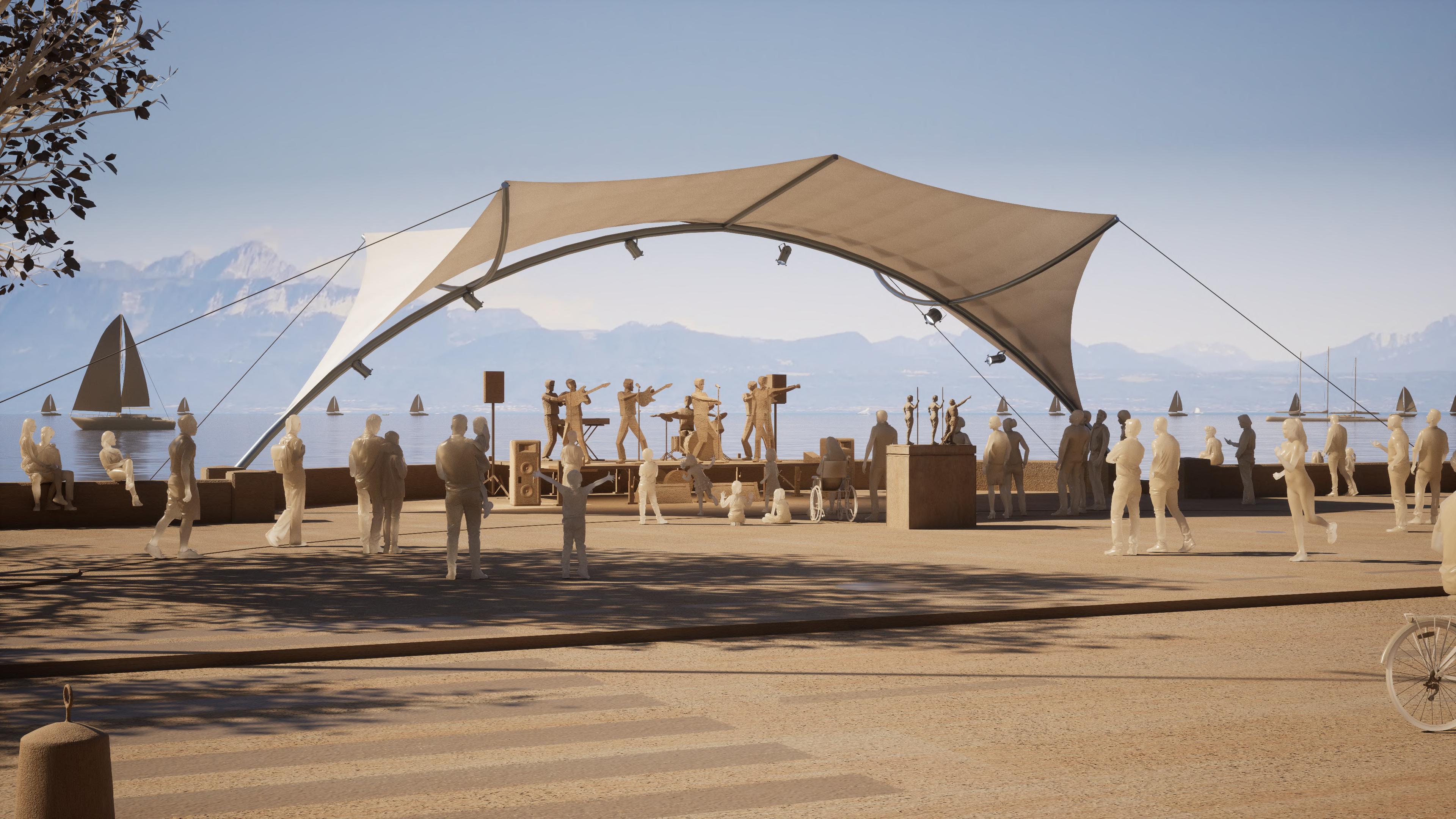 Une installation publique qui, par son allure dynamique, entraîne l'imaginaire des promeneurs du rivage vers le monde de la voile.