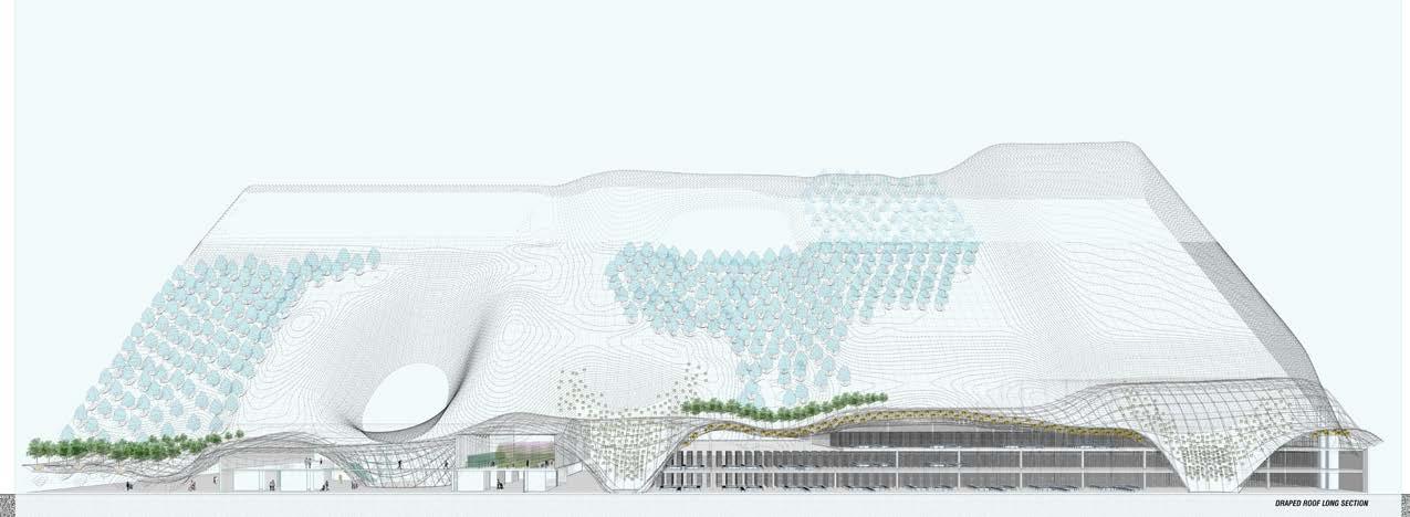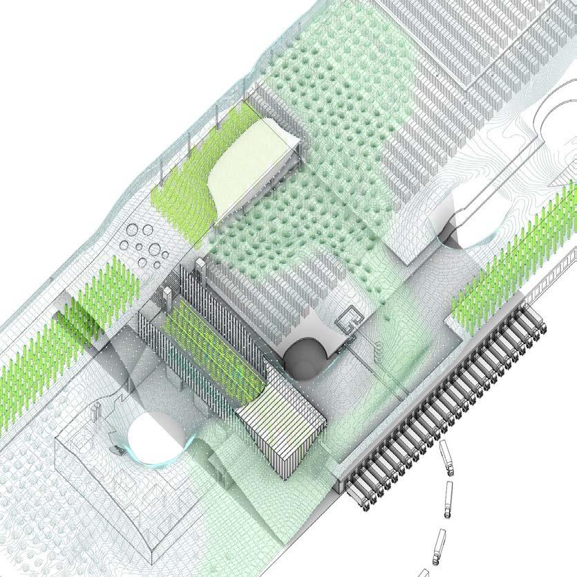 By lifting the site, we also created a framing towards to original museum as well as the center of the greenery park. By lifting the site, we also faced some opportunity to have this gradual slope to have different use of the site program, such as floor to seating to wall.