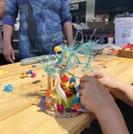 De kunstenaars gebruiken bij hun workshops veelal restmaterialen. Oude behangboeken, tweedehands stoffen, ongebruikte lp’s met krassen en lege melkpakken. ‘Die lp’s bijvoorbeeld worden beschilderd. Een melkpak verandert in een ets. Circulaire kunst maakt kinderen bewust van duurzaamheid en recycling. Wees creatief met duurzame kunst. Als je kunt verbeelden, kun je alles in het leven. •