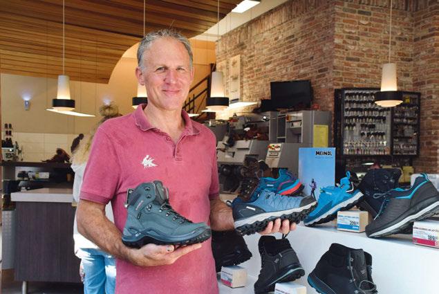 Door het nauwe contact tussen de schoenmakerij en de diverse fabrikanten weet u zeker dat de nieuwste modellen en accessoires altijd voorhanden zijn. ‘Los van wat iemand mooi vindt, kijken we ook echt naar het type schoen dat hij of zij nodig heeft. Zo weet je bijvoorbeeld dat je bij Meindl uitkomt wanneer je een wat bredere voet hebt, en dat is natuurlijk waar wij naar kijken, naast de mooie kleurtjes en afwerking’, benadrukt Paul den Ouden! •