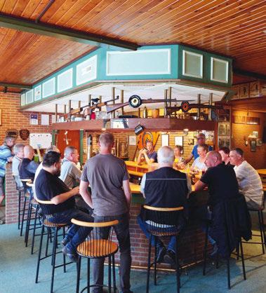 Sportschieten is een puur individuele sport. Voor het gezellige clubgevoel komen de leden na afloop samen aan de bar. Derrick Rijksen: ‘Sommigen komen alleen hier voor een biertje, een babbeltje en de gezelligheid. Natuurlijk mag dat ook!’ •