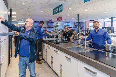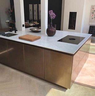 op het gebied van interieur; keukens, badkamermeubelen, haardwanden, etc. Mensen kunnen hier worden geïnspireerd, maar ook als je al ideeën hebt, kun je hier goed je materialen uitzoeken. Er is een keur aan steensoorten, houtsoorten en metalen. Aparte ideeën zijn welkom, maatwerk vinden ze tof. Je zult geen 13 in een dozijn keukens of badkamers van hun tekentafel zien komen. ‘Hoe gekker het idee, hoe enthousiaster we worden! Of als we het zelf mogen invullen; helemaal leuk. We kunnen toch alles zelf maken.’