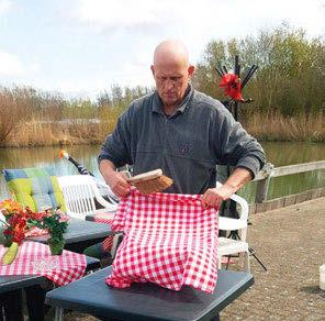 ‘Aan de waterkant zijn 33 goed bereikbare visplekken, voorzien van een veilige lage reling en steunen voor de hengels en het visvoer’, vervolgt Johan. ‘Meer ruimte is er niet. Dat stelt grenzen aan ons ledental. Momenteel zijn er 46 leden, afkomstig uit de wijde omgeving. Onder hen ook vaste campinggasten uit Ingen. Alleen mensen met een lichamelijke beperking zijn bij ons welkom.’