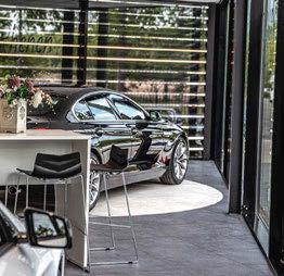 En in het najaar wordt de inpandige showroom uitgebreid, om nog eens 120 auto’s plaats te bieden. Het plaatje is compleet. Een bosrijke omgeving, een chique pand met een sportieve, tikkeltje racy inrichting. Een perfecte combinatie waar al dat moois uitstekend tot zijn recht komt. Een goed kopje koffie, vriendelijke adviseurs en uitgebreide testmogelijkheden van de bolides horen daar natuurlijk bij. Zelfs laadpalen waar de bezoeker gratis gebruik van kan maken, ontbreken niet bij dit luxe autoparadijs.