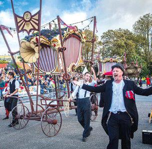Op zaterdag 16 september trekken 18 kunstwerken door de straten van Tiel. Zowel ’s middags als ’s avonds vanaf de tribune een ware beleving. Bekijk je de corsowagens liever van dichtbij? Ook op zondag 17 en maandag 18 september bruist Tiel en kom je ogen en oren tekort.