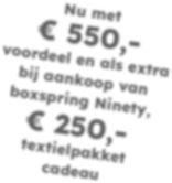 Nu met € voordeel550,en als extra bij aankoop van boxspring Ninety, € 250,textielpakket cadeau