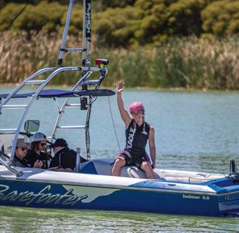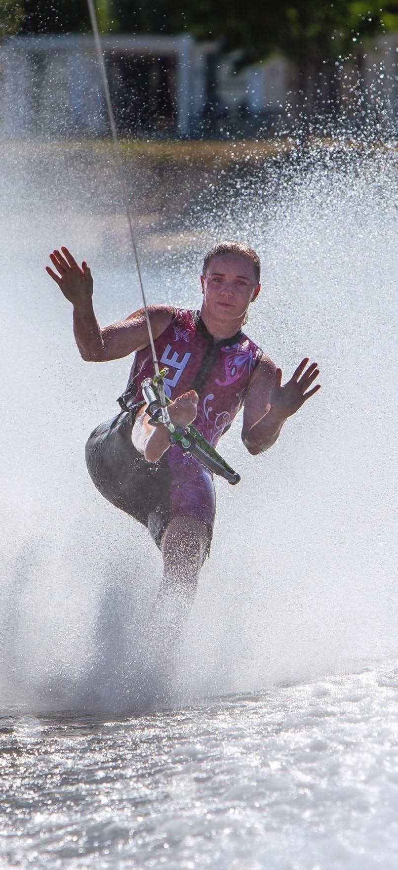 Gelukkig biedt een WK met honderd deelnemers veel meer competitie en uitdaging. Australië, Nieuw-Zeeland en de VS zijn sterke tegenstanders. Omdat de sport wereldwijd zo klein is, voelt de community aan als familie. Het is een hectisch leven voor de ziekenhuisverpleegkundige. ‘Driemaal in de week in het water, vijf keer naar de sportschool. En natuurlijk mijn werk, want je kunt niet leven van barefoot waterskiën!’ Dat weet Kimberly Smit zeker! •