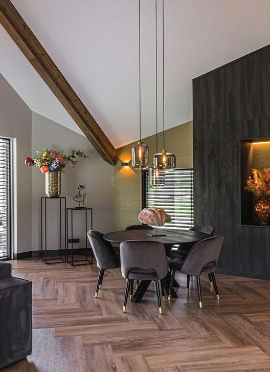 Pvc-vloeren met visgraatmotief of laminaat in whitewashlook. Vele soorten dichte en transpa rante gordijnstoffen en de nieuwste soorten raamde coratie. Natuurlijk ontbreken ook de trendy vloercollecties van vtwonen en de gordijnencollecties van Nederlandse designers zoals Mart Visser niet. Het exclusieve behang van Casamance maakt het plaatje compleet.