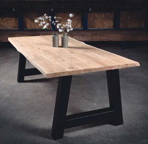 de sloop vindt het meer dan 100-jarige eiken zijn weg naar de fabriek. En daar start het een nieuw bestaan. ‘En wij weten altijd de herkomst.’ De veelal zwart gepoedercoate stalen onderstellen zijn van Nederlandse makelij en nieuw, maar passen vanwege hun stoere uiterlijk verrassend mooi bij het hout.