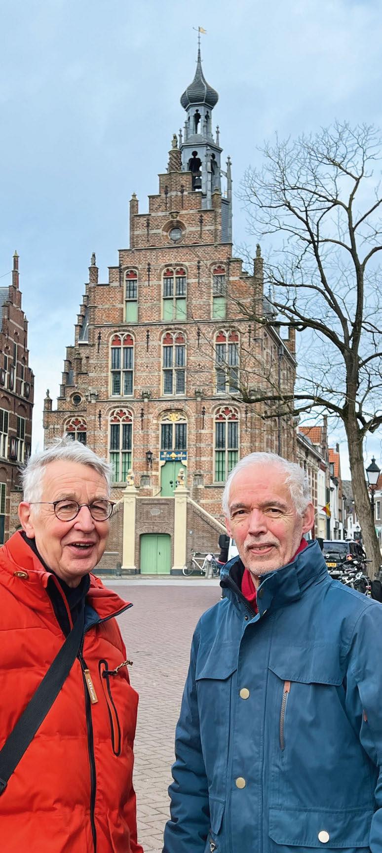 Theo van Kessel en Paul Imhoff over de historische stad. Theo: ‘Ik heb vroeger bij het archief gewerkt en organiseer nu zo’n veertig jaar stadswandelingen, altijd met veel plezier. Wij zijn heel flexibel; onze routes door de stad worden aangepast aan de wens van de bezoekers. De grote route is ongeveer anderhalf uur; korter kan altijd. De bezoekers die we krijgen komen uit het hele land. Treinreizigers die langs Culemborg komen, hebben dan een prachtig uitzicht op de rivier