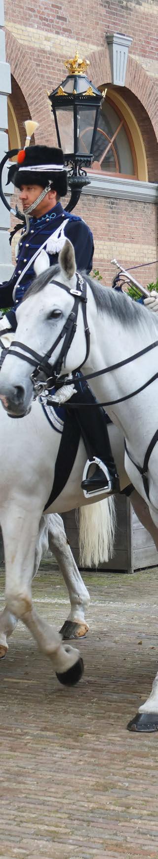Zo was ik aanwezig bij de indrukwekkende uitvaarten van prins Claus en prins Bernhard. Je rijdt dan op je eigen paard. Als trompetter bevind ik me met de paukeniste voorin de stoet, net achter de commandant. Een bijzonder eervolle taak die ik met het grootste respect en trots uitvoer.’