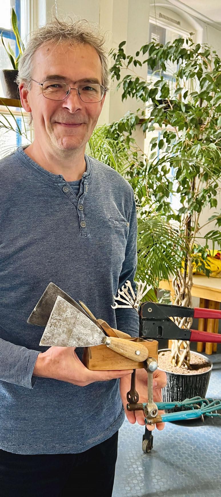 docent op een basisschool, maar wilde wat anders. Schilderen was zijn hobby. Zelf inlijsten was de volgende stap en hij besloot de vakopleiding lijstenmaker bij Nimeto te volgen. Zo kwam hij als stagiair bij ons terecht. Hij begon de vele facetten van het vak steeds leuker te vinden en nu gaat hij voor zichzelf beginnen in de omgeving van Nieuwegein.’ Michiel juicht dat van harte toe! •