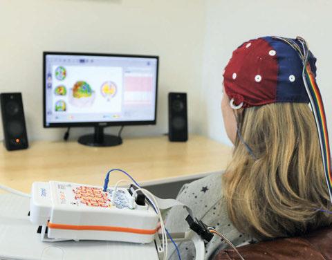 Luuk van Leur vertelt: ‘Je ziet direct waar en welke hersengolven de standaard waarden overschrijden. Met neurofeedback trainen we het brein weer in balans. Hoe? Gewoon in een stoel, voor een scherm met een EEG-kap op.’