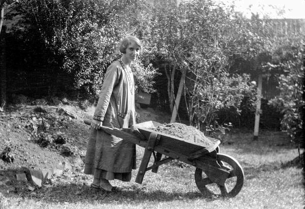 Winifred Joseph with Wheelbarrow August 1923