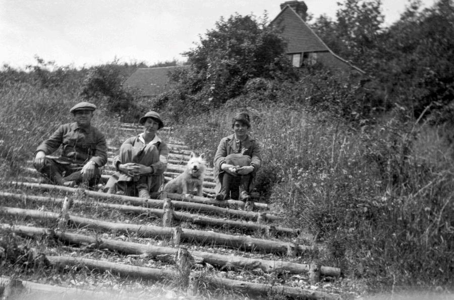 It was the beauty of the surrounding landscape that had captivated Roberts and Stamp when they first visited Oakshott. The upper two-thirds of their property was a steep woodland of beech, ash, whitebeam and yew. Below, the cleared ground was a wild carpet of strawberries, thyme, marjoram and milkwort. A keen botanist and gardener, Roberts embarked on creating a garden. He had a set of nearly 300 steps cut into the steep woodland leading up to the house and there was a bathing pool by the stream.