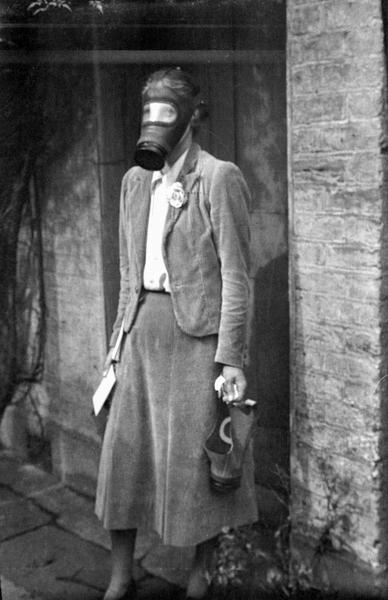 in Gas Mask Harford Street London