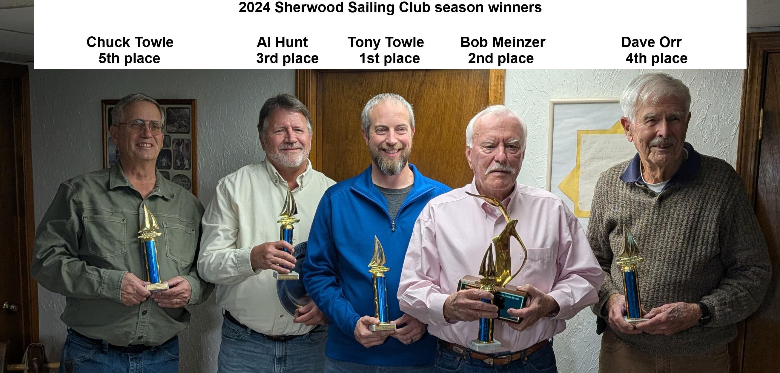 The Sherwood Sailing Club completed its 2024 Holiday Awards Banquet and gift exchange. It has been another great year of social events and sailboat racing. This year, we ran 15 regular-season races from May 19th to September 29th. The best eight races for each of this year’s 17 sailors were used to calculate the following season winners: