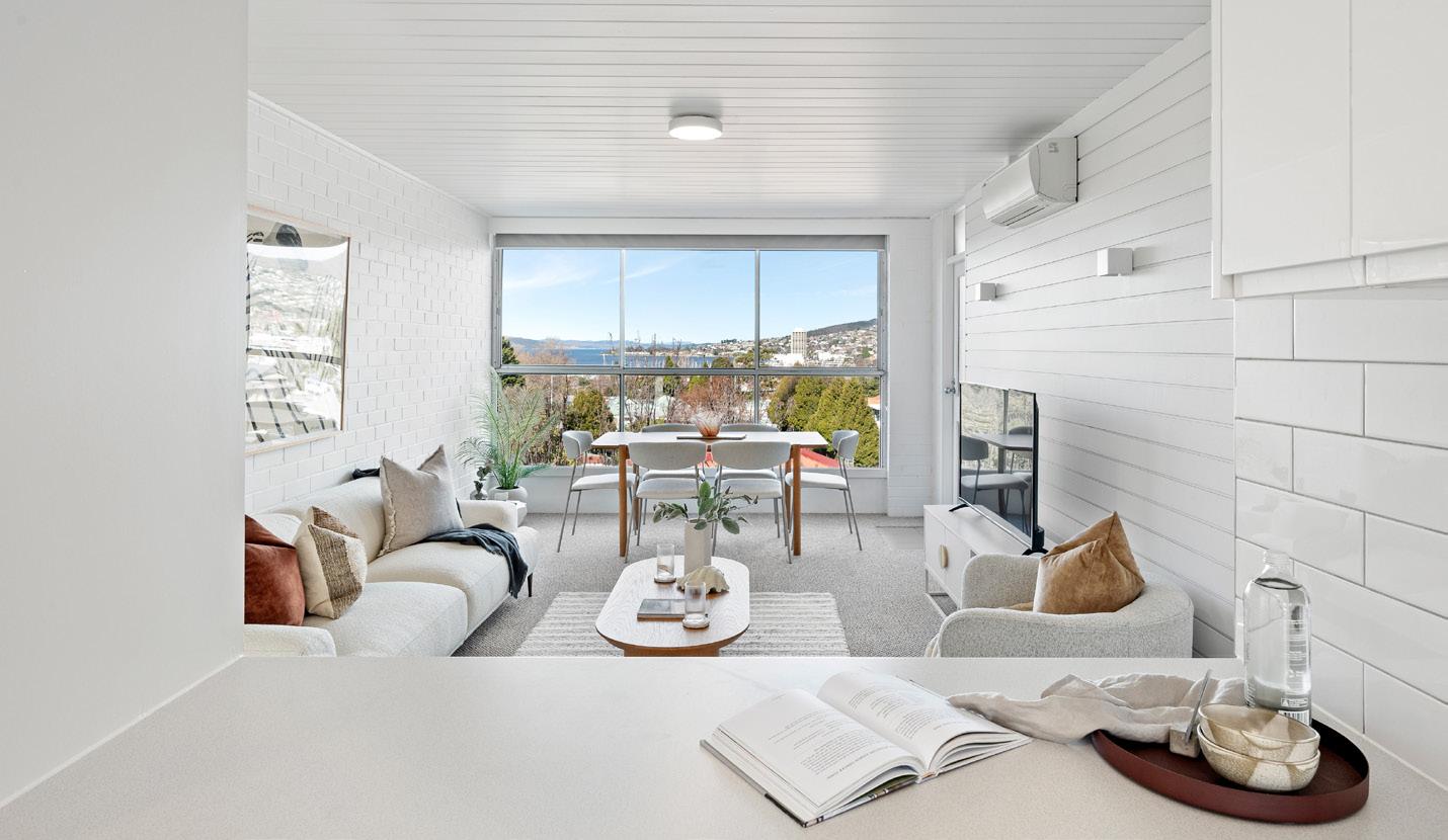 Occupying a coveted position atop the prestigious, iconic Quarterdeck Apartments in the heart of Sandy Bay sits a magnificent, sun-drenched penthouse with spectacular vistas stretching out across the River Derwent, kunanyi/Mount Wellington and beyond.