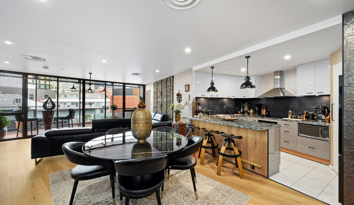 Imagine the grandeur and elegance of a bygone era reinterpreted as the backdrop for a stylish and comfortable contemporary lifestyle – this is what you will discover at 3 Lasswade Avenue. Under the vision of architects Studio Ilk, within the framework of this stately 120 year old Federation Queen Anne home, beautiful original period details have been retained and juxtaposed with modern embellishments to enhance liveability and luxury. Finishes are impeccable and elemental, with magnificent Kauri timber floors, the dramatic original blackwood staircase, soaringly high ceilings, and statement Tasmanian oak wall panelling. The eclectic use of such modern details as distinctive Louis Poulsen and Brand Van Egmond pendant lights, lavish porcelain tiles in all four bathrooms, steel and glass, and a neutral palette creates cohesion throughout.