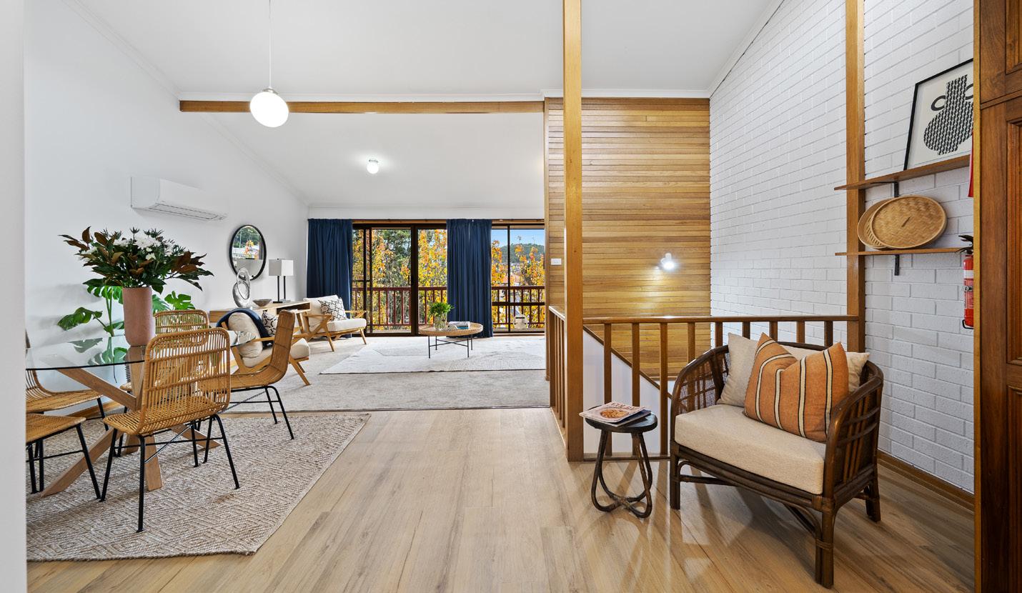The generous main living space opens directly onto a tranquil al fresco deck, with both covered and open-air areas designed for year-round enjoyment. Complete with a pizza oven and a built-in fire pit zone, it’s the perfect setting for relaxed entertaining. The surrounding landscaped gardens complete with established hedging, trees and lush lawns provide a beautiful haven for children to play and explore.