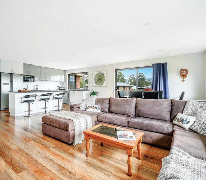 2,171 sqm approx CYGNET 32 Elizabeth Street • Neutral décor • Renovated kitchen • Private established gardens • High quality joinery and appliances $795,000+ price range 125 sqm approx CONTACT Bec Owens and Gavin Duhig Set within easy reach of the township of Cygnet among private established gardens, this gorgeous cottage has been restored with love and attention to detail by its current owners. The heart of the home centres around the renovated kitchen featuring vaulted ceilings, high quality joinery and appliances. Doors to the undercover entertaining area as well as connection to the living areas inside. 513 DODGES FERRY 7 Chaffeys Drive • Spacious, sun-filled living spaces • Expansive, landscaped grounds • Secure shed with workshop space • 45 minutes to Hobart’s CBD $995,000+ price range 265 sqm approx 1,647 sqm approx CONTACT Harry Coomer and Phoebe Nothling Situated within the popular beachside suburb of Dodges Ferry, nestled upon an expansive, landscaped allotment, this remarkable residence boasts impressive craftmanship and quality. Incorporated within the light-filled living and dining sits the gourmet kitchen, fully equipped with high-end appliances including a freestanding 6-burner gas stove, quality timber cabinetry and a walk-in pantry, and solid countertops including a handy breakfast bar. 523 NEW