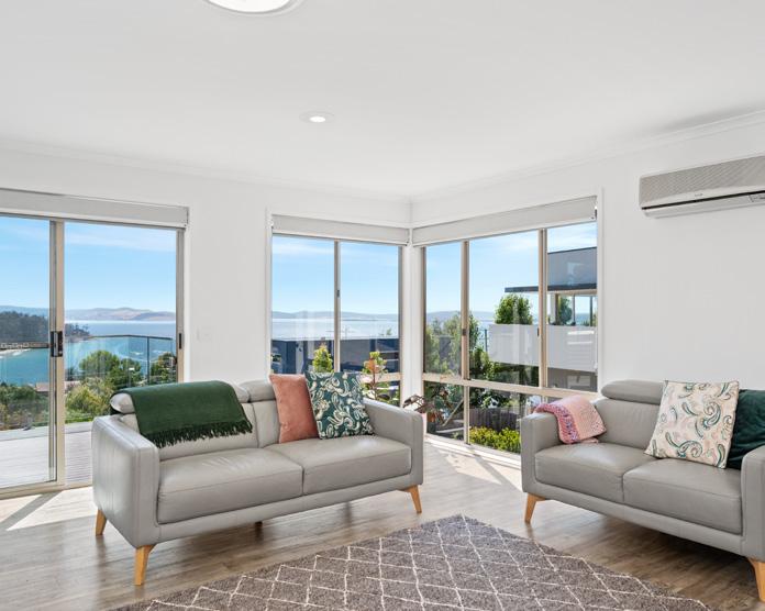CONTACT Harry Coomer and Phoebe Nothling $745,000+ price range 647 sqm approx 86 sqm approx 1 1 3 • Double glazing throughout • Fabulous entertaining deck and courtyard • Fenced grounds with off-street parking • 10 minutes to Hobart’s CBD Situated within a leafy, sought-after South Hobart Street, nestled behind classic white picket fence and a trio of Wollemi pines, this impressive, character-filled family home offers contemporary comfort and spacious living. Light-filled and open-plan, the family area exudes understated elegance, with neutral décor, grey carpets, and abundant sunshine providing a comfortable living space. SOUTH HOBART 16 Syme Street NEW CONTACT Bec Owens and Gavin Duhig $895,000+ price range 1,072 sqm approx 145 sqm approx 3 1 4 • Large private block • Immaculate presentation • Oriented for sun and views • Convenient central location This inviting family home is nestled within a garden oasis, enjoying sweeping views from Tranmere to Bruny Island. Set back from the road in a sunny yet elevated position, there is a garage and further off-street parking with turning area. The driveway is lined with a variety of established fruit trees and the main entry is accessed via the front garden. TAROONA 189 Channel Highway NEW