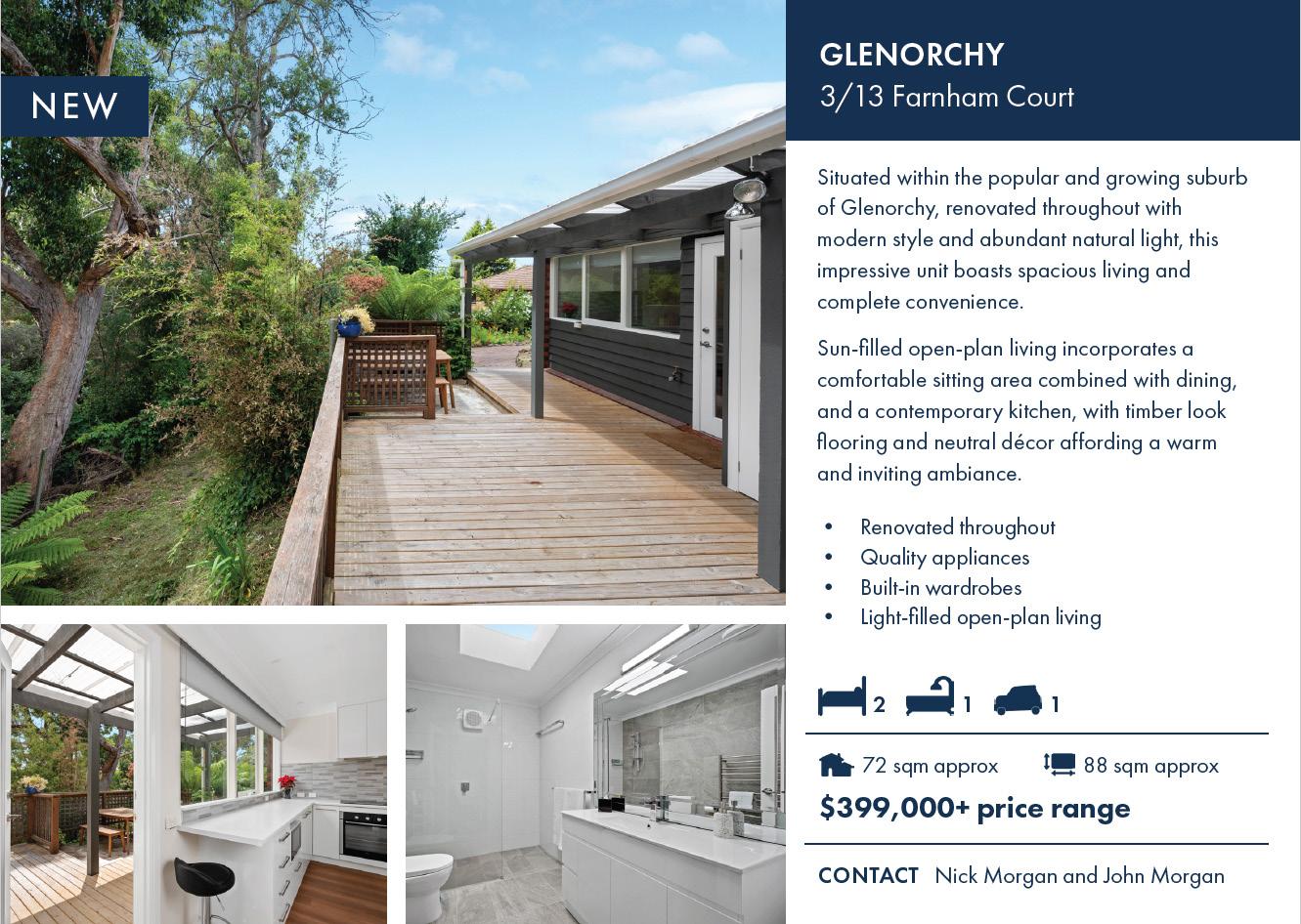 ROSETTA 5a Gould Crescent 4 2 3 CONTACT Jess Hansen and Craig Anderson $995,000+ price range 196 sqm approx 617 sqm approx RICHMOND 39 Jacombe Street 3 2 4 CONTACT Harry Coomer and Jack Waller Contact agent 218 sqm approx 801 sqm approx OAKDOWNS 2/30 Cologne Drive 3 2 3 CONTACT Jack Waller $645,000+ price range 165 sqm approx 315 sqm approx NEW TOWN 4 Warragul Avenue 3 1 3 CONTACT Christian Bugden and Kim Morgan $895,000+ price range 137 sqm approx 647 sqm approx