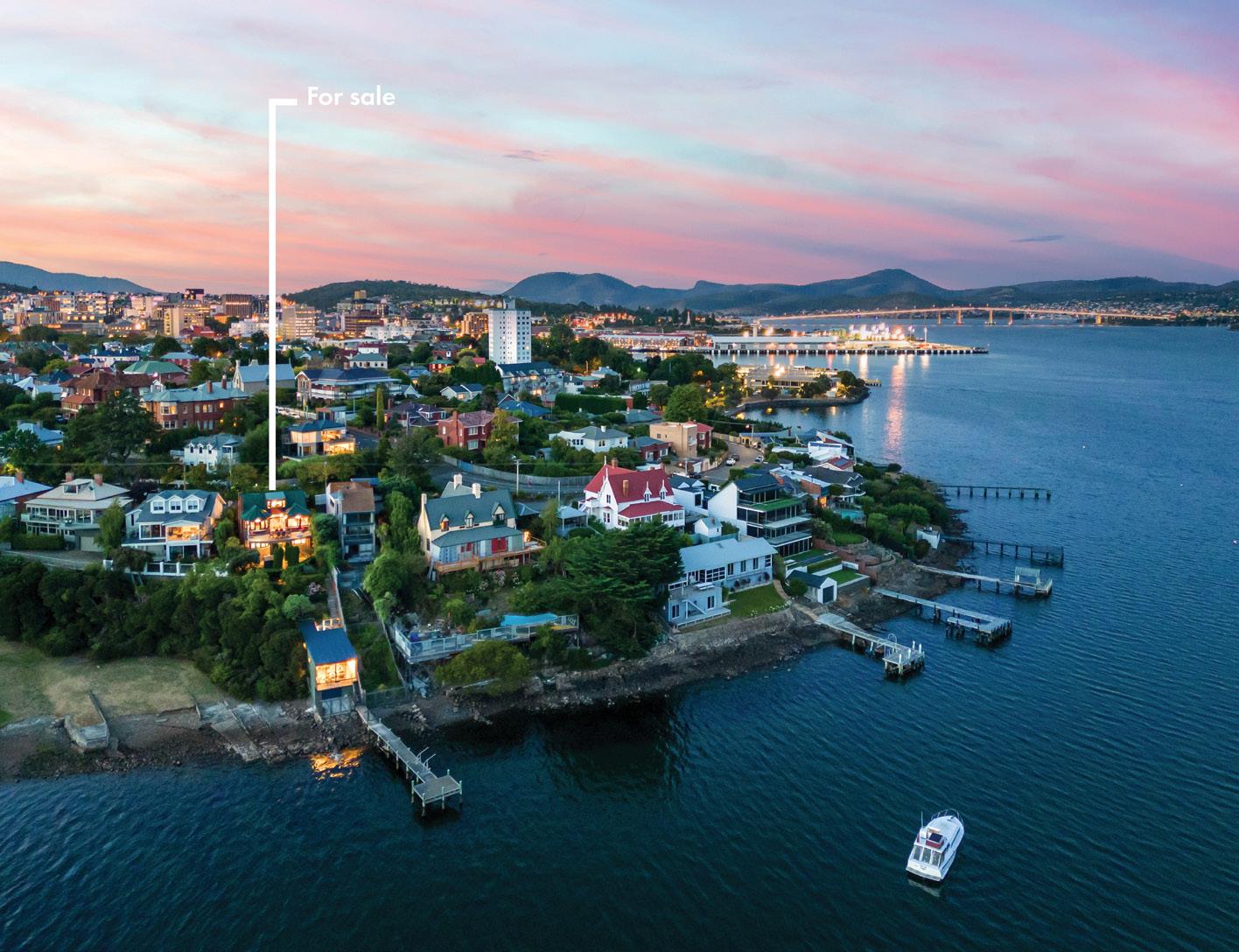 Occupying a waterfront position in exclusive Battery Point, with a feeling of being suspended above the glistening waters of the River Derwent, sits a spectacular home in the heart of the iconic suburb, complete with a private boathouse and enviable views from the sought-after enclave.